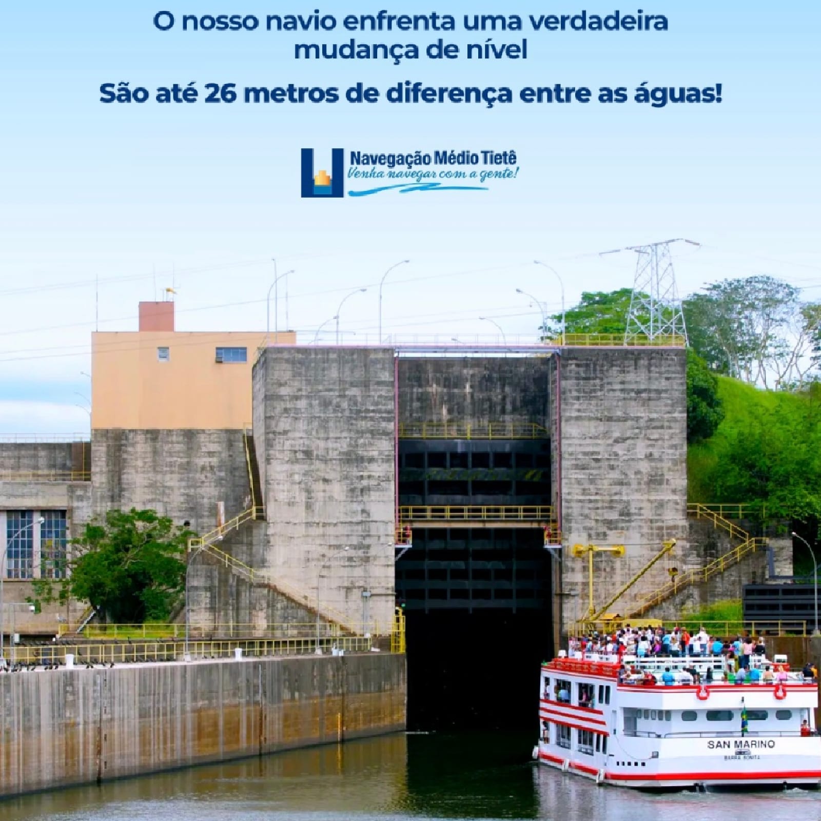 Venha ter essa experiência incrível de conhecer de perto o funcionamento de uma eclusa, um sistema que permite que barcos superem desníveis nos rios.