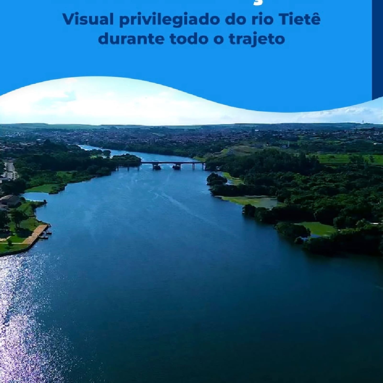 O passeio oferece vistas panorâmicas do Rio Tietê, natureza ao redor e lazer a bordo de um navio.